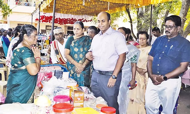 தஞ்சாவூர் குந்தவை நாச்சியார் அரசினர் மகளிர் கலை கல்லூரியில் மகளிர் சுய உதவி குழுக்களால் உற்பத்தி செய்யப்பட்ட பொருட்களை காட்சிப்படு த்தவும், விற்பனை செய்யவும் ஏற்பாடு செய்யப்பட்டு விற்பனைக்கு வைக்கப்பட்டது.
