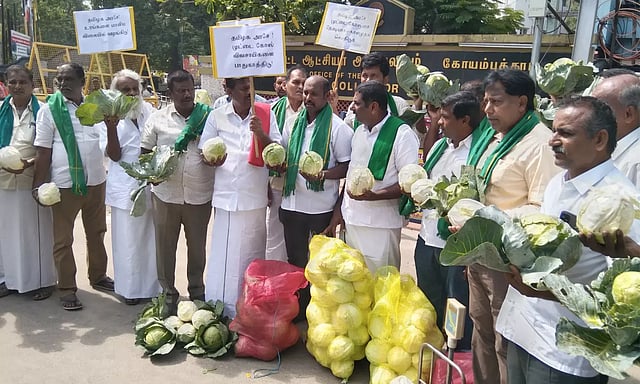இவ்வாறு மனுவில் கூறப்பட்டு இருந்தது. மேலும், விவசாயிகள் கலெக்டர் அலுவலகத்திற்கு கொண்டு வந்த முட்டைகோஸ்களை பொதுமக்களுக்கு இலவசமாக வழங்கி சென்றனர்.