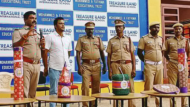 செங்கோட்டை ட்ரஷர் ஐலண்ட் இன்டர்நேஷனல் பள்ளியில் தீபாவளி பண்டிகையை முன்னிட்டு தீயணைப்புத்துறையினர் விழிப்புணர்வு முகாம் நடத்தினர்.