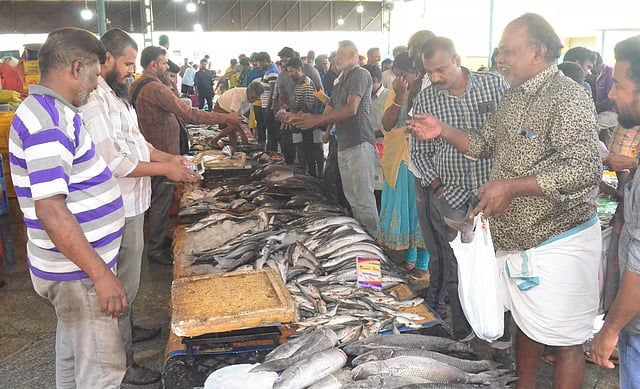 கோவை உக்கடத்தில் மீன் மார்க்கெட் செயல்பட்டு வருகிறது.