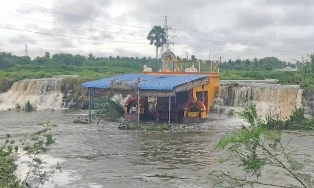 இந்த கோவில் பலருக்கும் குலதெய்வ கோவிலாக இருந்து வருகிறது. இந்தநிலையில் வெள்ளப்பெருக்கு காரணமாக நல்லம்மன் கோவில் முழுவதும் நொய்யல் ஆற்று நீரால் சூழப்பட்டுள்ளது.
