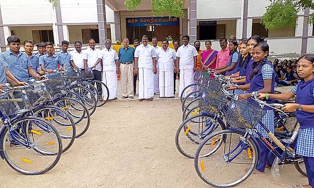 விளாத்திகுளம் அரசுப்பள்ளியில் இலவச சைக்கிள்கள் வழங்கும் விழா நடைபெற்றது. நிகழ்ச்சியில் மார்க்கண்டேயன் எம்.எல்.ஏ. கலந்துகொண்டு 238 மாணவ-மாணவிகளுக்கு விலையில்லா இலவச சைக்கிள்களை வழங்கினார். இதனைத் தொடர்ந்து பள்ளி விளையாட்டு மைதானத்தில் மாணவர்கள் பயன்பெறும் வகையில் கயிறு ஏறும் உபகரணத்தை திறந்து வைத்தார்.