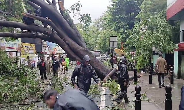 இதன் காரணமாக இந்த 3 சாலைகளிலும் சிறிது நேரம் போக்குவரத்து பாதிக்கப்பட்டது. மரங்கள் அகற்றப்பட்ட பின்னர் சாலையில் போக்குவரத்து சீரானது.