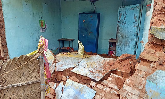 சிறிதுநேரத்தில் மேற்கூரையில் இருந்து பூச்சுகள் விழுந்ததால் சுதாரித்துக்கொண்ட 2 பேரும் வீட்டைவிட்டு வெளியேறினர். சிறிதுநேரத்தில் வீட்டின் சுவர் முழுவதும் இடிந்து பொருட்கள் நாசமானது. அதிர்ஷ்டவசமாக அவர்கள் சரியான நேரத்திற்கு வெளியே வந்ததால் உயிர்தப்பினார்கள்.