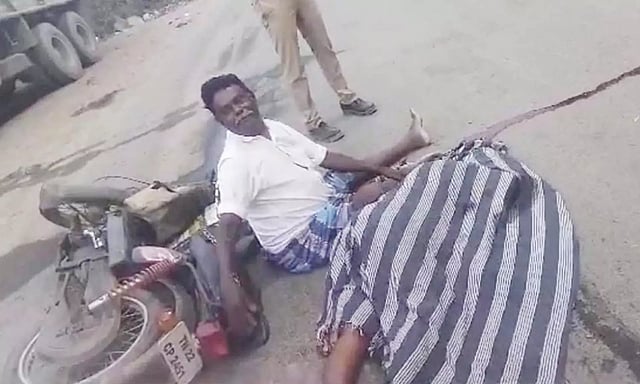 அனகாபுத்தூர் அருகே சென்று கொண்டிருந்த போது, சாலையோரம் படுத்து இருந்த மாடு மீது எதிர்பாராத விதமாக மோட்டார்சைக்கிள் உரசியது. இதில் கட்டுப்பாட்டை இழந்த மோட்டார் சைக்கிள் தாறுமாறாக ஓடி சாலையோரத்தில் சரிந்தது. இதில் சின்னையாவும், அவரது மனைவி நாகம்மாளும் மோட்டார் சைக்கிளோடு கிழே விழுந்தனர்.