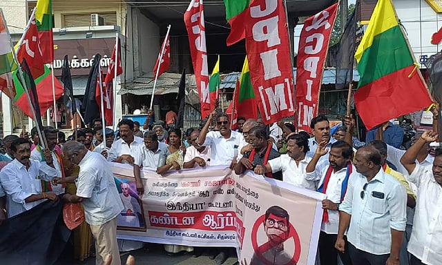 இதில் மார்க்சிஸ்டு கம்யூனிஸ்டு மாவட்ட செயலாளர் மாதவன், இந்திய கம்யூனிஸ்டு கட்சி அன்சர்ரி, காங்கிரஸ் கட்சி மக்கின், ஜெமினிராதா, விடுதலை சிறுத்தைகள் கட்சி தமிழ் ஒளி உள்ளிட்ட 100-க்கும் மேற்பட்டோர் கலந்து கொண்டனர்.