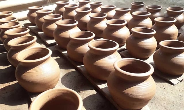 மண் கட்டிகளை உடைத்து தூளாக்கி பசை போன்று பதத்திற்கு வரும் வரை ஒரு நாள் பதப்படுத்தப்படும். பின் கைகளால் நன்கு அடித்து மண் கலவை உருவாக்கப்படும்.இதையடுத்து சுழலும் சக்கரத்தைக் கொண்டும், கையாலும் பொங்கல் பானை, தீச்சட்டி உள்ளிட்ட மண்பாண்டங்கள் உற்பத்தி செய்யப்படுகிறது. நன்கு உலர வைக்கப்படும் பானைகளில் வர்ணம் பூசி வெயிலில் காய வைத்து விற்பனை செய்யப்படுகிறது