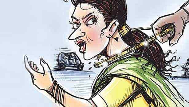 அப்போது விளாங்குறிஞ்சி அருகே வந்த போது அந்த வழியாக மோட்டார் சைக்கிளில் 3 மர்ம நபர்கள் வந்தனர். அவர்கள் திடீரென விஜயலட்சுமியின் அருகில் வந்து அவரது கழுத்தில் இருந்த 3 பவுன் தங்க நகையை பறித்தனர்.