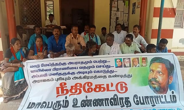 இது குறித்து சந்திரன் ராஜாக்கமங்கலம் போலீஸ் நிலையத்தில் புகார் அளித்தார். சந்திரனை தாக்கிய போலீசாரை கைது செய்ய வலியுறுத்தி விடுதலை சிறுத்தை கட்சியினர் கட்சி நிர்வாகி திருமாவேந்தன் தலைமையில், மாநில துணை செயலாளர் அல்காலித் உள்பட நிர்வாகிகள் ராஜாக்கமங்கலம் போலீஸ் நிலையம் முன்பு முற்றுகை போராட்டத்தில் ஈடுபட்டனர்.