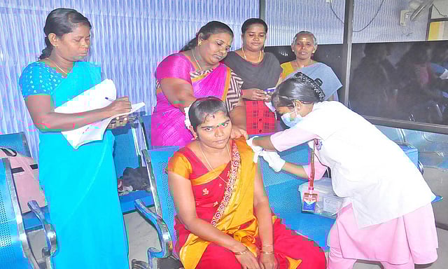 அரசு ஆஸ்பத்திரிகள், ஆரம்ப சுகாதார நிலை யங்கள் மற்றும் பொதுமக்கள் அதிகம் கூடும் இடங்களில் சுகாதாரப் பணியாளர்கள் தடுப்பூசி போடும் பணியில் ஈடுபட்டனர். நாகர்கோவிலில் வடிவீஸ் வரம் ஆரம்ப சுகாதார நிலையம் தொல்லவிளை ஆரம்ப சுகாதார நிலையம், வடசேரி ஆரம்ப சுகாதார நிலையங்களில் தடுப்பூசி செலுத்தப்பட்டது.