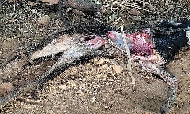 இந்நிலையில் தொட்டகாஜனூர் கிராமத்தைச் சேர்ந்தவர் ராசப்பா (42) விவசாயி. 4 மாடுகள், 5 ஆடுகள் வளர்த்து வருகிறார். வழக்கம் போல் வீட்டின் முன் உள்ள கொட்டகையில் கட்டி வைத்து விட்டு தூங்க சென்றுவிட்டார். காலை வந்து பார்த்த போது தனது ஆடு ஒன்று பாதி உடலை தின்ற நிலையில் இறந்து கிடந்து.