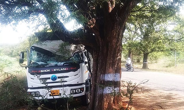 தென்காசி மாவட்டம் கடையம் பகுதியில் இருந்து கனிம வளங்களை கேரளாவுக்கு ஏற்றி செல்ல இன்று காலை லாரி ஒன்று கடையம் பகுதிக்கு வந்து கொண்டிருந்தது.கடையத்திற்கு மேற்கே இரப்பன் பாலம் அருகே லாரி வந்தபோது, அதிக வேகத்தின் காரணமாக கட்டுப்பாட்டை இழந்த லாரி அங்கிருந்த புளியமரத்தின் மீது எதிர்பாராதவிதமாக மோதியது. இதில் லாரியின் முன்பக்க கண்ணாடி உடைந்து சேதமானது.