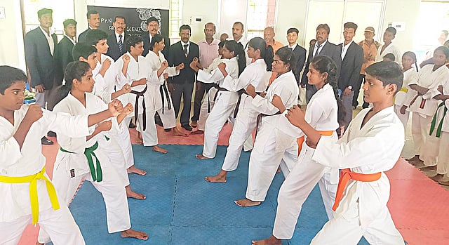 திருமங்கலம் அருகே தனியார் கல்லூரியில் உலக சோட்டோகான் கராத்தே பெடரேஷன் அமைப்பின் சார்பில் மாவட்ட அளவிலான கராத்தே போட்டி நடந்தது. 6 வயது முதல் 20 வயது வரை பங்கேற்ற மாணவர்கள் திறமையை வெளிப்படுத்தினர்.