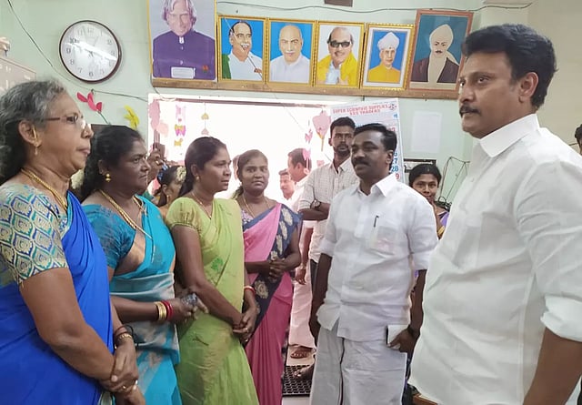 மதுரை மாவட்டம், சோழவந்தான் அரசு பெண்கள் மேல்நிலைப் பள்ளியில் கல்வித்துறை அமைச்சர் அன்பில் மகேஷ் பொய்யாமொழி திடீர் ஆய்வு மேற்கொண்டார். ஒவ்வொரு வகுப்பறையாக சென்று பார்வையிட்ட அவர் பள்ளியின் அடிப்படை வசதி, கல்வி தரம் போன்றவை குறித்து ஆசிரியர்களிடம் கேட்டறிந்தார். மேலும் மாணவிகளிடமும் குறைகளை கேட்டறிந்தார். அமைச்சரிடம் கூடுதலாக விளையாட்டு மைதானம், கழிப்பறை வசதி செய்து தருமாறு மாணவிகள் கோரிக்கை வைத்தனர். மாலை நேர வகுப்புகள் நடத்துமாறு அமைச்சர், ஆசிரியர்களிடம் கேட்டுக்கொண்டார். இந்த ஆய்வில் வெங்கடேசன் எம்.எல்.ஏ. பேரூராட்சி மன்றத்தலைவர் ஜெயராமன்,செயல் அலுவலர் சகாய அந்தோணி யூஜின், நகர செயலாளர் வக்கீல் சத்ய பிரகாஷ், அவைத்தலைவர் ராமன், மாவட்ட பிரதிநிதி பெரியசாமி, திருவேடகம் ஒன்றிய கவுன்சிலர் வசந்த கோகிலா சரவணன் உள்பட தி.மு.க. நிர்வாகிகள் பலர் கலந்து கொண்டனர்.
