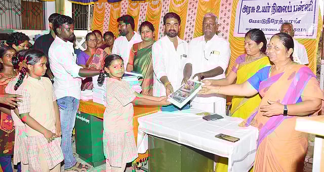 மதுரை மாவட்டம் மேட்டு நீரேத்தான் கிராமத்தில் அமைந்துள்ள அரசு உயர்நிலைப்பள்ளியில் பயிலும் மாணவ, மாணவிகள் நூற்றுக்கும் மேற்பட்டவர்களுக்கு நோட்டு புத்தகங்கள் வழங்கப்பட்டது.