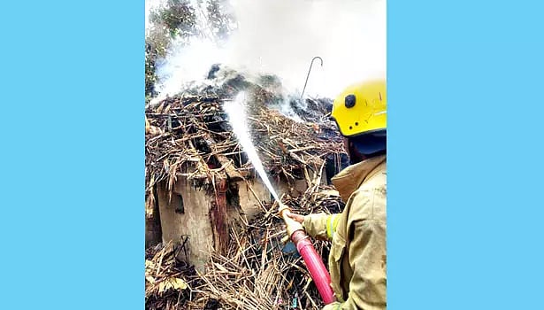 அப்போது காற்று பலமாக வீசியதால் தீ அருகில் உள்ள ஜெயராஜின் குடிசை வீட்டுக்கு பரவியது. கண்ணிமைக்கும் நேரத்தில் தீ மளமளவென எரிய தொடங்கியது. இதுகுறித்து உடனடியாக மேலூர் தீயணைப்பு நிலையத்திற்கு தகவல் தெரி விக்கப்பட்டது. அதன் பேரில் மேலூர் தீயணைப்பு நிலைய அலுவலர் பொன்னாண்டி தலைமை யில் தீயணைப்பு படை வீரர்கள் சம்பவ இடத்திற்கு விரைந்து வந்து 1மணி நேரம் போராடி தீயை அணைத்தனர்.