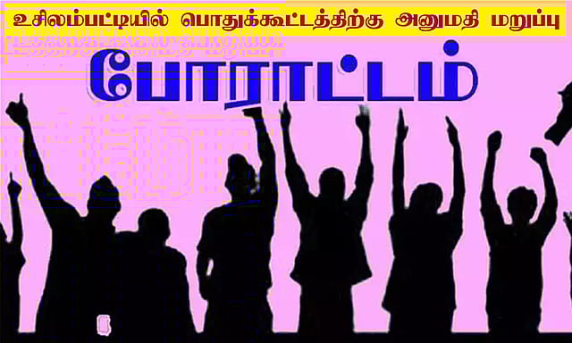 இந்த நிலையில் பொதுக்கூட்டம் நடத்த அனுமதி வழங்கக் கோரி மாநில அமைப்பாளர் சேதுராமன், பொறுப்பாளர் பீமாராவ்ராம் தலைமையில் விஸ்வ இந்துபரிஷத் நிர்வாகிகள் 30 பேர் உசிலம்பட்டி தேவர் சிலை முன்பு தர்ணா போராட்டத்தில் ஈடுபட்டனர். அவர்களை போலீசார் கைது செய்து அப்புறப்படுத்தினர். இதனால் அங்கு பரபரப்பு ஏற்பட்டது.