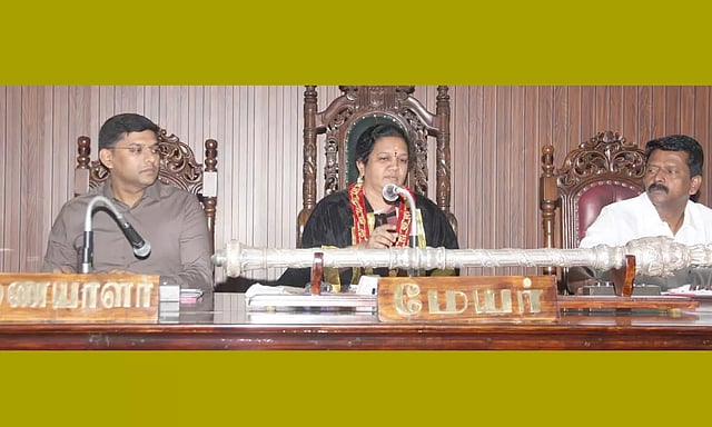 அப்போது 26- வது வார்டு அ.தி.மு.க. கவுன்சிலர் சொக்காயி பேசுகையில், கவுன்சிலர்களுக்கு சம் பளத்தை உயர்த்தி அறிவித்த முதல்-அமைச்சரை பாராட்டி கல்வெட்டு வைக்க வேண்டும் என்றும், எனது வாக்குக்கு மதிப்பளிக்க வேண்டும் என்றும் கூறினார். உடனே மேயர் இது ஜக்கம்மா வாக்கு என பதிலளித்தார். இதனால் கூட்டத்தில் சிரிப்பலை எழுந்தது.
