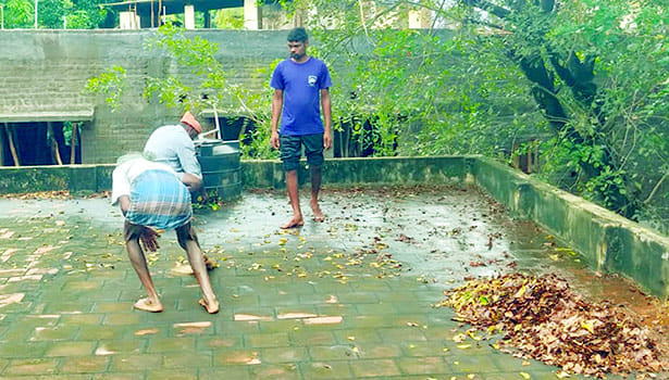 ஊராட்சியில் உள்ள அரசு தொடக்கப்பள்ளி கட்டிடங்கள், நடுநிலைப்பள்ளி கட்டிடங்கள், ஊராட்சிக்கு சொந்தமான கட்டிடங்களில் மேல்தளத்தில் மழைநீர் தேங்கி நிற்பதை தடுக்க கட்டிடங்களின் மேல்தளத்தில் கிடந்த இலை, தழைகளையும், குப்பைகளையும் ஊராட்சி பணியாளர்கள் மற்றும் கூலி தொழிலாளர்கள் மூலம் அகற்றப்பட்டது.
