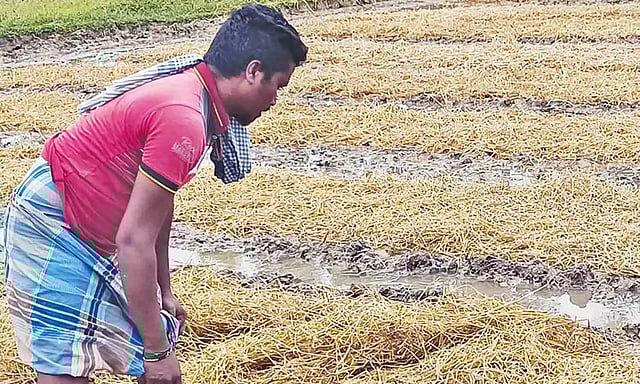 நேற்று முன்தினம் இரவு காட்டு பன்றிகள் கூட்டமாக வந்து நெல் விதைத்த நாற்றங்காலை சேதப்படுத்தி விட்டு சென்றுள்ளன காலையில் விவசாயிகள் வயலுக்கு சென்று நாற்றங்காலை பார்த்த போது காட்டு பன்றிகளால் நாற்றாங்கால் சேதம் படுத்தப்பட்டுள்ளது.