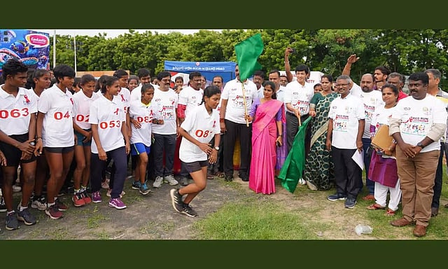 சர்வதேச இளைஞர் தினத்தை முன்னிட்டு பெருநகர சென்னை மாநகராட்சி மற்றும் தமிழ்நாடு மாநில எய்ட்ஸ் கட்டுப்பாட்டு சங்கம் சார்பில் எச்.ஐ.வி. பற்றிய விழிப்புணர்வு ஏற்படுத்தும் வகையில் கல்லூரி மாணவ, மாணவியர்கள் பங்கேற்ற மாரத்தான் ஓட்டத்தினை மேயர் ஆர்.பிரியா இன்று சென்னை தீவுத்திடலில் கொடியசைத்து தொடங்கி வைத்தார்.
