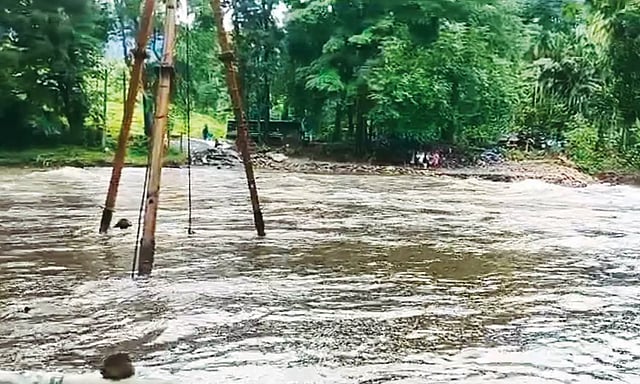 கோதையாற்றில் ஏற்பட்ட வெள்ளப்பெருக்கு காரணமாக மோதிரமலை-குற்றியாறு தரைப்பாலத்தை மூழ்கடித்து தண்ணீர் சென்றது. ஏற்கனவே அந்த பகுதியில் பழைய பாலத்தை மாற்றிவிட்டு புதிய பாலம் கட்டுமான பணி நடைபெற்று வருவதால் அங்கு தற்காலிக பாலம் அமைக்கப்பட்டு இருந்தது. அந்த தற்காலிக பாலத்தை காட்டாற்று வெள்ளம் இழுத்துச் சென்றது.