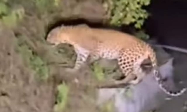 சில வாகன ஓட்டிகள் சிறுத்தையும் நடமாட்டத்தை தங்களது செல்போனில் படம் பிடித்தனர். சிறிது நேரம் சாலையோரம் உலா வந்த சிறுத்தை சாலை தடுப்பு சுவரை தாண்டி பின்னர் மீண்டும் வனப்பகுதிக்குள் சென்றது.