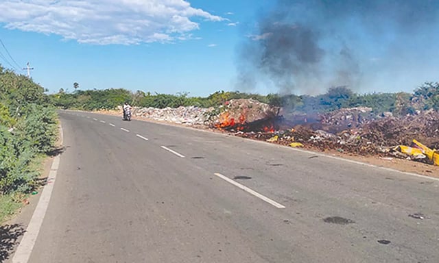 மேலும், சில நேரங்களில் குப்பைகளை மர்மநபர்கள் சிலர் தீ வைத்து எரிப்பதால் அவ்வழியாக வாகனங்களில் செல்பவர்கள் மிகுந்த சிரமத்திற்கு ஆளாகின்றனர்.