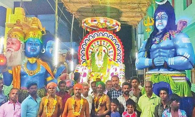 தொடர்ந்து இரவில் கோவிலில் இருந்து அலங்கரிக்கப்பட்ட சப்பரத்தில் நாராயணர் செண்டை மேளம் முழங்க ஊர்வலமாக வந்து மீண்டும் கோவிலை வந்தடைந்தார். நாராயணரின் சப்பரத்தின் முன்பாக சிவன், பிரம்மா, விஷ்ணு ஆகிய வேடங்களை உயரமாக அமைத்து ஆடி, பாடி வந்தனர். இதனை ஏராளமான பக்தர்கள் கண்டுகளித்தனர். நேற்று முக்கூடல் முத்தமிழ் பேரவையின் இலக்கிய சொற்பொழிவு மற்றும் கலை நிகழ்ச்சிகள் நடைபெற்றது.