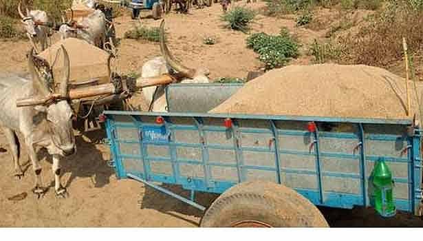 இதை பார்த்த போலீசார் உடனே 2 மாட்டு வண்டிகளை பிடிக்க முயன்றனர். போலீசார் வருவதை கண்டவுடன் மாட்டு வண்டிகளில் மணல் அள்ளி வந்த அதே பகுதியைச் சேர்ந்த அய்யப்பன், அய்யனார் இருவரும் தப்பி ஓடிவிட்டனர். இது குறித்து போலீசார் வழக்கு பதிவு செய்து தப்பி ஓடிய 2 பேரை வலைவீசி தேடி வருகின்றனர்.