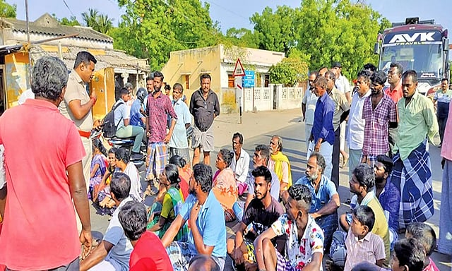 இந்தப் போராட்டம் காரணமாக திருச்செந்தூர்- தூத்துக்குடி நெடுஞ்சாலை யில் சிறிது நேரம் போக்கு வரத்து பாதிக்கப்பட்டது.