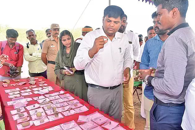 வெள்ளி முத்திரைக் காசுகள், செம்பிலான பொருட்கள், இரும்பில் ஆன பொருட்கள், சுடு மண்ணால் ஆன பொம்மை, சுடுமண்ணால் ஆன விளையாட்டு பொருட்கள், நீலக்கல் கண்ணாடி மணிகள், பளிங்கு கல்மணிகள் ஆகிய முக்கிய தொல்பொருட்கள் ஆகும். தமிழில் பொறிக்கப்பட்ட பானை ஓடுகளும் கண்டறியப்பட்டுள்ளன. இதனைத் தொடர்ந்து 2-ம் கட்டமாக அகழாய்வு பணிகள் இன்று தொடங்கின.