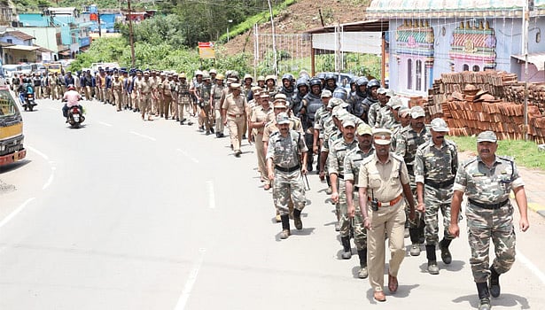 பாதுகாப்பு பணியில் ஈடுபடும் போலீசார் ஊட்டி, கோத்தகிரி உள்ளிட்ட இடங்களில் கொடி அணிவகுப்பு நடத்தினர். ஊட்டியில் தாவரவியல் பூங்கா சாலையில் தொடங்கிய கொடி அணிவகுப்பு, சேரிங்கிராஸ், கமர்சியல் சாலை, அப்பர் பஜார், மெயின் பஜார் வழியாக மத்திய பஸ்நிலையத்தை அடைந்தது. கோத்தகிரி டானிங்டன் பகுதியில் வஜ்ரா வாகனத்துடன் தொடங்கிய கொடி அணிவகுப்பு காமராஜர் சதுக்கம், ராம்சந்த் சதுக்கம், மார்க்கெட் சாலை வழியாக சென்று பஸ் நிலையத்தை அடைந்தது. குன்னூரில் சிம்ஸ் பூங்கா பகுதியில் தொடங்கிய கொடி அணிவகுப்பு லாலி ஆஸ்பத்திரி கார்னர், மவுண்ட் ரோடு வழியாக பஸ்நிலையம் வரை நடந்தது. இதில் போலீசார் துப்பாக்கி ஏந்தியபடி சென்றனர்.