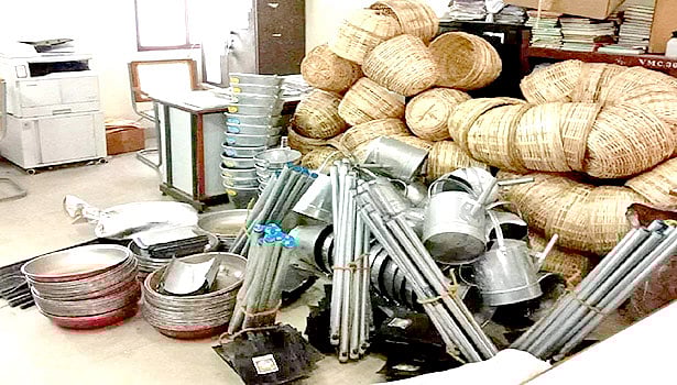 மரத்தினால் ஆன மேஜை 11, மரத்தினால் ஆன நாற்காலி 46, ஒயர் பின்னிய மர நாற்காலி 15, மரத்தினால் ஆன மேடை 13 உள்பட 24 வகையான பொருட்கள் மொத்தம் 202 ஆகும். இந்த தளவாடப் பொருட்கள் பொது ஏலம் விடப்படுகிறது.