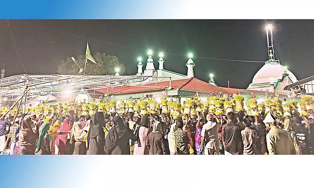 ஏர்வாடி சுல்தான் செய்யது இப்ராகீம் பாதுஷா நாயகம் தர்கா வினுள் நுாற்றுக்கணக்கான முளைப்பாரிகளை சுமந்து சென்ற பக்தர்களுக்கு, ஏர்வாடி தர்கா ஹக்தார் நிர்வாகிகள் சார்பில் வரவேற்பும் மரியாதையும் அளிக்கப்பட்டது.