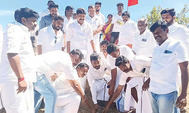 ராமநாதபுரம் மாவட்டம் மண்டபம் ஒன்றியம் மானாங்குடி ஊராட்சியில் கருணாநிதி நூற்றாண்டு விழாவையொட்டி தி.மு.க. சுற்றுச்சூழல் அணி சார்பில் 10 ஆயிரம் பனை விதை நடும் பணி தொடங்கியது.