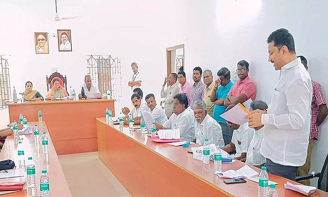 கூட்டத்தில் பத்திரிக்கையாளர்களை செய்தி சேகரிக்கவோ, படம் பிடிக்க அனுமதிக்காத நகராட்சி ஆணையரை கண்டித்து காங்கிரஸ், அமமுக, பாமக சேர்ந்த 7 உறுப்பினர்கள் கோஷங்கள் எழுப்பி வெளிநடப்பு செய்தனர்.