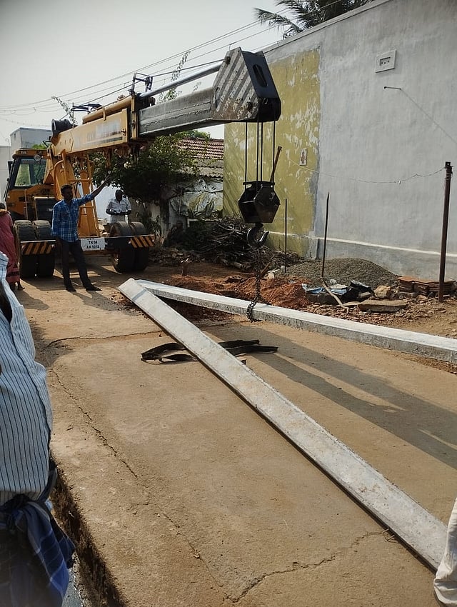 கோவை மாவட்டம், அன்னூர் வட்டம் நாரணாபுரம் ஊராட்சிக்கு உட்பட்ட வடுக பாளையத்தில் ஏ.டி காலணியில் உள்ள ஆனந்த் என்பவரின் வீட்டின் முன்பு மின் கம்பமானது கடந்த நான்கு ஆண்டுகளுக்கு மேலாக சாய்ந்து காணப்பட்டது.