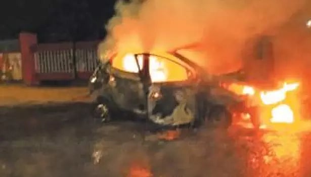 திருவண்ணாமலை மாவட்டம் தண்டாரம்பட்டு வி.எம் நகர் பகுதியை சேர்ந்தவர் ஜான்சன் (வயது 56). இவர், காரில் 4 பேருடன் தண்டாரம்பட்டு பகுதியில் இருந்து சேலம் வழியாக கன்னியாகுமரிக்கு ஒரு துக்க நிகழ்ச்சிக்கு சென்றார். அப்போது கார் சேலம் அம்மாபேட்டை பெருமாள் கோவில் மேடு அருகே இரவு வந்தபோது காரில் இருந்து புகை வந்தது. உடனே காரை ஓரமாக நிறுத்தி 4 பேரும் கீழே இறங்கினர். அதற்குள் கார் மளமள தீப்பிடித்து எரிந்தது. சுதாரித்துக்கொண்டு உடனடியாக 4 பேரும் கீழே இறங்கியதால் உயிர் தப்பினர்.