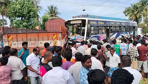 இதில் தங்கவேல் தலை மீது பஸ்சின் முன்பக்க சக்கரம் ஏறியதில் அவர் சம்பவ இடத்திலேயே தலை நசுங்கி பரிதாபமாக உயிரிழந்தார். ஹரிஹரன் பலத்த காயமடைந்தார்.