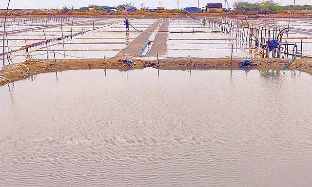 நாகப்பட்டினம் மாவட்டம், வேதாரண்யம் தாலுகா, அகஸ்தியன்பள்ளி, கோடியக்காடு, கடினல்வயல் உள்ளிட்ட பகுதிகளில் 9 ஆயிரம் ஏக்கரில் உப்பு உற்பத்தி பணிகள் முழு வீச்சில் நடைபெறுகிறது.