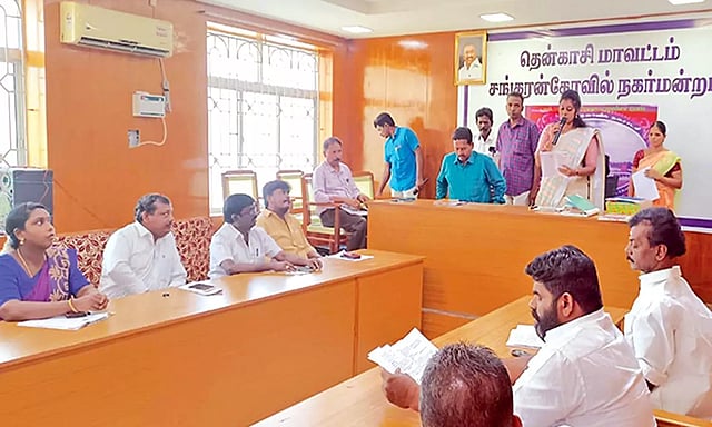 சங்கரன்கோவில் நகராட்சி கூட்டம் நகராட்சி கூட்டரங்கில் நடந்தது. சேர்மன் உமா மகேஸ்வரி சரவணன் தலைமை தாங்கினார். நகராட்சி கமிஷனர் சபாநாயகம் முன்னிலை வகித்தார். இதில் மாநகராட்சி மேயர்கள், துணை மேயர்கள், மாமன்ற உறுப்பினர்கள், நகராட்சி தலைவர்கள், துணைத் தலைவர்கள், நகர்மன்ற உறுப்பினர்களுக்கு மதிப்பூதியம் வழங்க முதல்-அமைச்சர் உத்தர விட்டதற்கும், இந்தியாவி லேயே முன்மாதிரி திட்டமாக மாணவ, மாணவிகள் கல்வி தரத்தில் உயர வேண்டும் என்ற மேலான எண்ணத்தில் வரலாற்று சாதனை திட்டமான காலை உணவு திட்டத்தை முதல்-அமைச்சர் அறிவித்த தற்கு நன்றி தெரிவித்து தீர்மானங்கள் நிறைவேற்றப்பட்டது.