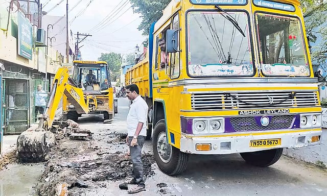 பொக்லைன் எந்திரம் கொண்டு பள்ளம் வெட்டும் பணி நடைபெற்று வருகிறது.