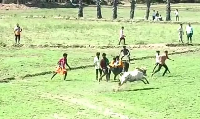 மாவட்டத்தின் பல்வேறு பகுதிகளில் இருந்து வந்த நூற்றுக்கணக்கான காளைகள் கண்மாய் மற்றும் வயல்வெளிகளில் அவிழ்த்து விடப்பட்டன. பாய்ந்து ஓடிய காளைகளின் திமிலை பிடித்து வீரர்கள் அடக்கிய காட்சிகளை பார்வை யாளர்கள் ஆர்வத்துடன் கண்டு ரசித்தனர்.