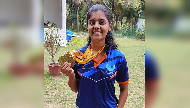 இதில் மதுரை, சென்னை, தூத்துக்குடி, விருதுநகர், திருப்பூர், கள்ளக்குறிச்சி,கோவை உள்பட பல்வேறு மாவட்டங்களில் இருந்து 20 பள்ளிகளை சேர்ந்தமாணவ, மாணவியர் கலந்து கொண்டனர். இந்த போட்டியில் ரிதன்யா ஸ்ரீ 19 வயதுக்கு உட்பட்டோர்பிரிவில் 3 பிரிவுகளில் பங்கேற்றார். பிரஸ்டு ஸ்ட்ரோக் 100 மீட்டர் பிரிவை 1.45 நிமிடத்தில் கடந்தார். 200 மீட்டரை, 4 நிமிடத்திலும், ப்ரீஸ்டைல் நீச்சல் பிரிவில், 400 மீட்டரை, 7.9 நிமிடத் திலும் கடந்து 3 பிரிவிலும் முதல் பரிசாக தங்கப் பதக்கம் வென்றார்.