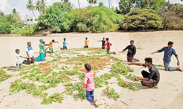 இயற்கை வேளாண் விஞ்ஞானி நம்மாழ்வார் 85 -வது பிறந்தநாளை முன்னிட்டு சுற்றுச்சூழல் பாரம்பரிய உணவு குறித்த விழிப்புணர்வு ஏற்படுத்தும் வகையில் தஞ்சாவூர் மாவட்டம் திருவையாறு காவிரி ஆற்று மணலில் நம்மாழ்வார் உருவப்படத்தை இலை தழைகள், பூக்களால் மணலில் வரைந்து பள்ளி, கல்லூரி மாணவர்கள் விழிப்புணர்வை ஏற்படுத்தினர்.