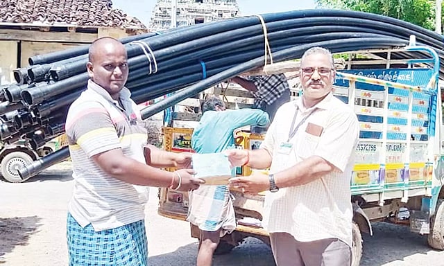 நாகை மாவட்டம் திருமருகல் தோட்டக்கலை துறை மூலம் பிரதம மந்திரியின் நுண்ணீர் பாசன திட்டத்தின் கீழ் சிறு,குறு விவசாயிகளுக்கு 100 சதவீத மானியத்திலும்,பெரும் விவசாயிகளுக்கு 75 சதவீத மானியத்திலும் ஏக்கர் ஒன்றுக்கு 18 கருப்பு நிற தண்ணீர் குழாய்கள் வழங்கப்படும் என அறிவி க்கப்பட்டு விண்ணப்பங்கள் பெற ப்பட்டது.விண்ண ப்பங்கள் பெறப்பட்டு தகுதியான 400 விவசாயிகளுக்கு முழு மானியத்தில் தண்ணீர் குழாய்களை உதவி தோட்ட க்கலை அலுவலர்கள் செல்லபாண்டியன், சரவண அய்யப்பன் ஆகியோர் வழங்கினர்.
