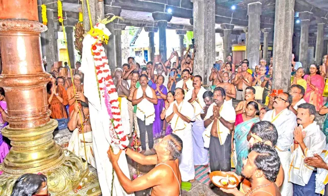 சுசீந்திரம் தாணுமாலயன் சுவாமி கோவிலில் ஆவணி திருவிழா கொடியேற்றத்துடன் இன்று தொடங்கியது. இதில் திரளான பக்தர்கள் கலந்துகொண்டனர்.