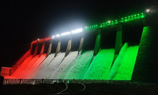 இந்நிலையில் 75-வது சுதந்திர தினத்தை கொண்டாடும் வகையில் பவானிசாகர் அணையின் மேல் மதகுகள் வழியாக வெளியேறும் உபரிநீர் தேசிய கொடியின் மூவர்ண நிறத்தில் வெளியேறும் வகையில் வண்ண விளக்குகளால் அலங்கரிக்கப்பட்டுள்ளது.
