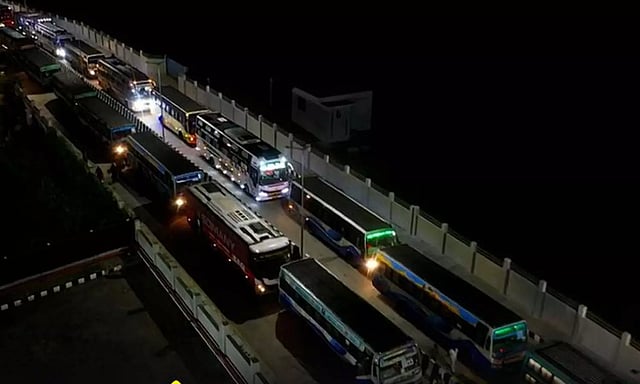 இரவு 9 மணி முதல் 12 மணி வரை ஜி.எஸ்.டி. சாலையில் போக்குவரத்து நெரிசல் ஏற்பட்டது. பஸ்கள் அணிவகுத்து நின்றன.